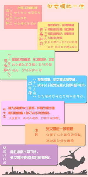 1,处女膜的厚度、韧性与处女膜孔的大小在每个女性都不完全相同。经血就是从这个孔里流出的。