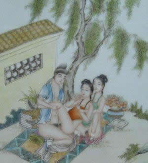"素女"指房中术《素女经》。将春宫画与小姐观看的习惯,在中国古典文学中也有描写。唐代诗人白行简《天地阴阳交欢大乐赋》就说到《素女经》画册。清代李渔《肉蒲团》中的未央生,为了陶养一位如泥朔木雕、毫无生趣的绝色女子,"到书画铺买幅绝精绝巧的春宫册子,是本朝学士赵子昂的手笔,共有三十六套,唐诗上三十六宫都是春色的意思,拿去放在闺阁之中,好与玉香小姐共同翻阅。"可见在中国古代,春宫图的作用之一是作为进行性教育的媒介。除此以外,春宫图还作为"避火图"、"护书"和"嫁妆画"在民间大量流行。明、清两代,天津杨柳青等地的一些妇女每年春节前将春宫画当做年画销售,这就是有名的"女儿春"。